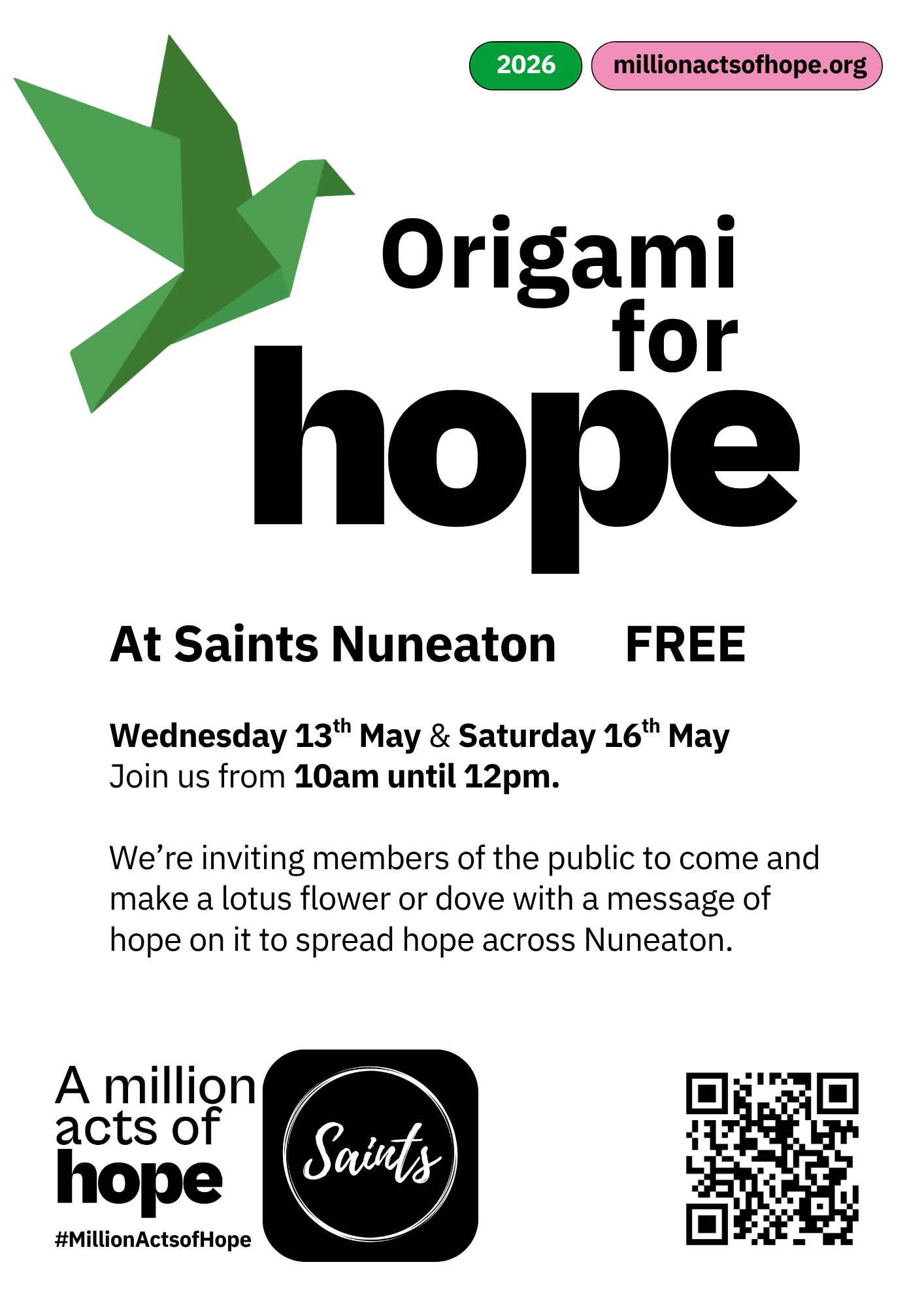 Saints Nuneaton is a community regeneration project based in the heart of Nuneaton town centre, which works in collaboration with local churches and is led by the charity Together for Change.